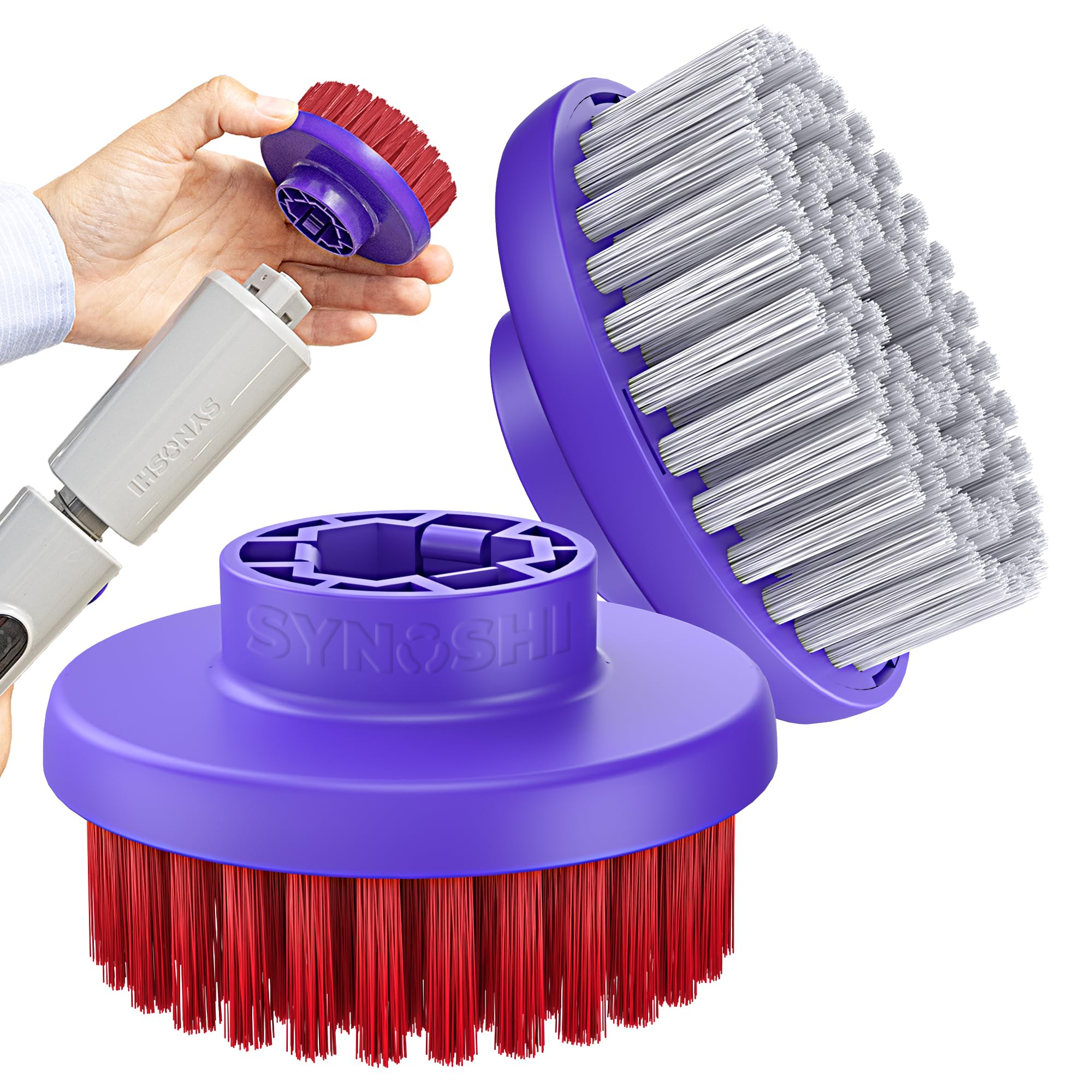 The SYNOSHI PRO Round Brush Set provides two replacement brush heads specifically designed for the SYNOSHI PRO Electric Spin Scrubber. These brushes are engineered for effective and consistent cleaning across various surfaces in your home, including bathrooms, showers, floors, and tiles.